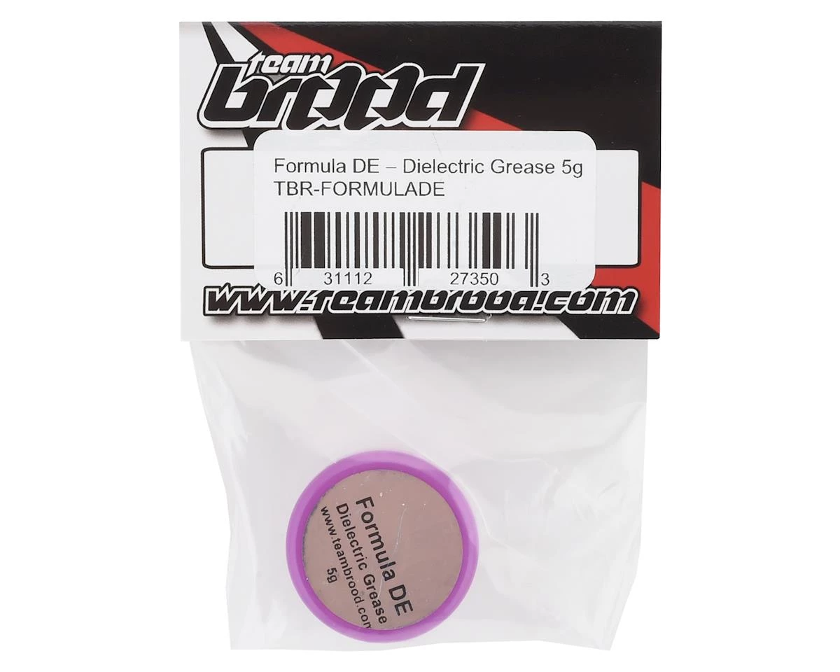 Team Brood Formula DE Dielectric Grease is a non-curing silicone compound designed to seal, protect and insulate electrical components and connectors. Utilizing a waterproof design that protects against moisture and other contaminants in electrical connections while resisting washout, Formula DE can be used a wide range of applications in your RC car or truck including sensor ports, receiver ports, power connections and many more.