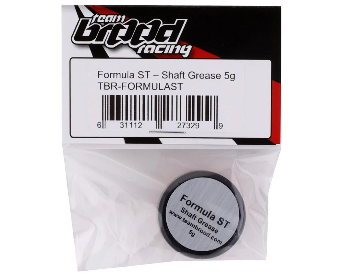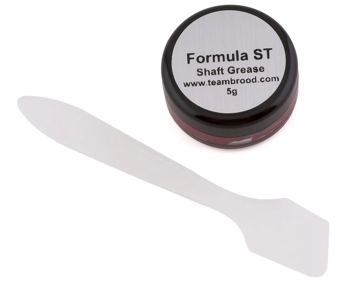 The Team Brood Formula ST Shaft Grease is a synthetic grease that provides exceptional film strength and shear resistance for exceptional shaft protection. With superior adhesion properties that allow the shaft to stay lubricated while resisting moisture allowing the grease to stay in place, especially in metal to metal mating components. Package includes one five-gram tub of grease and one applicator.Â