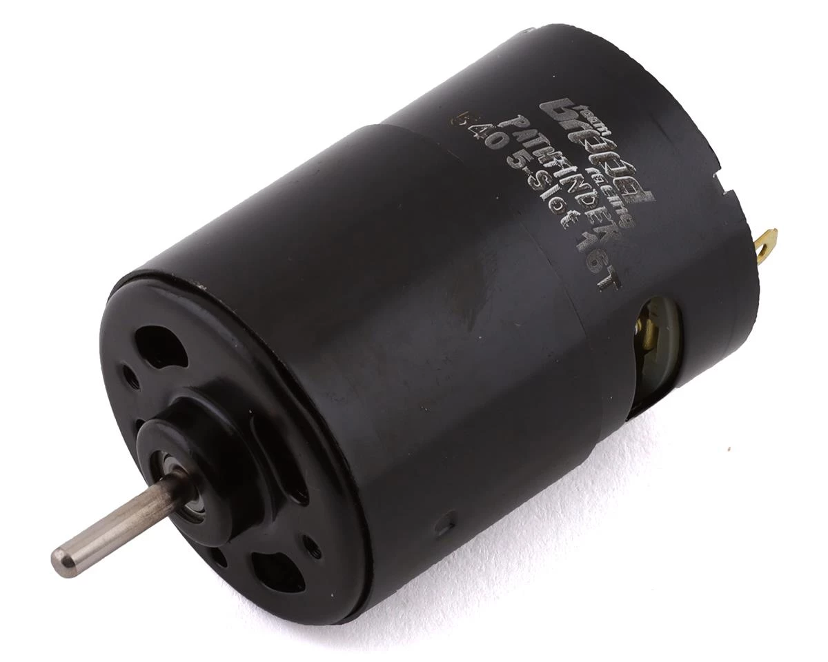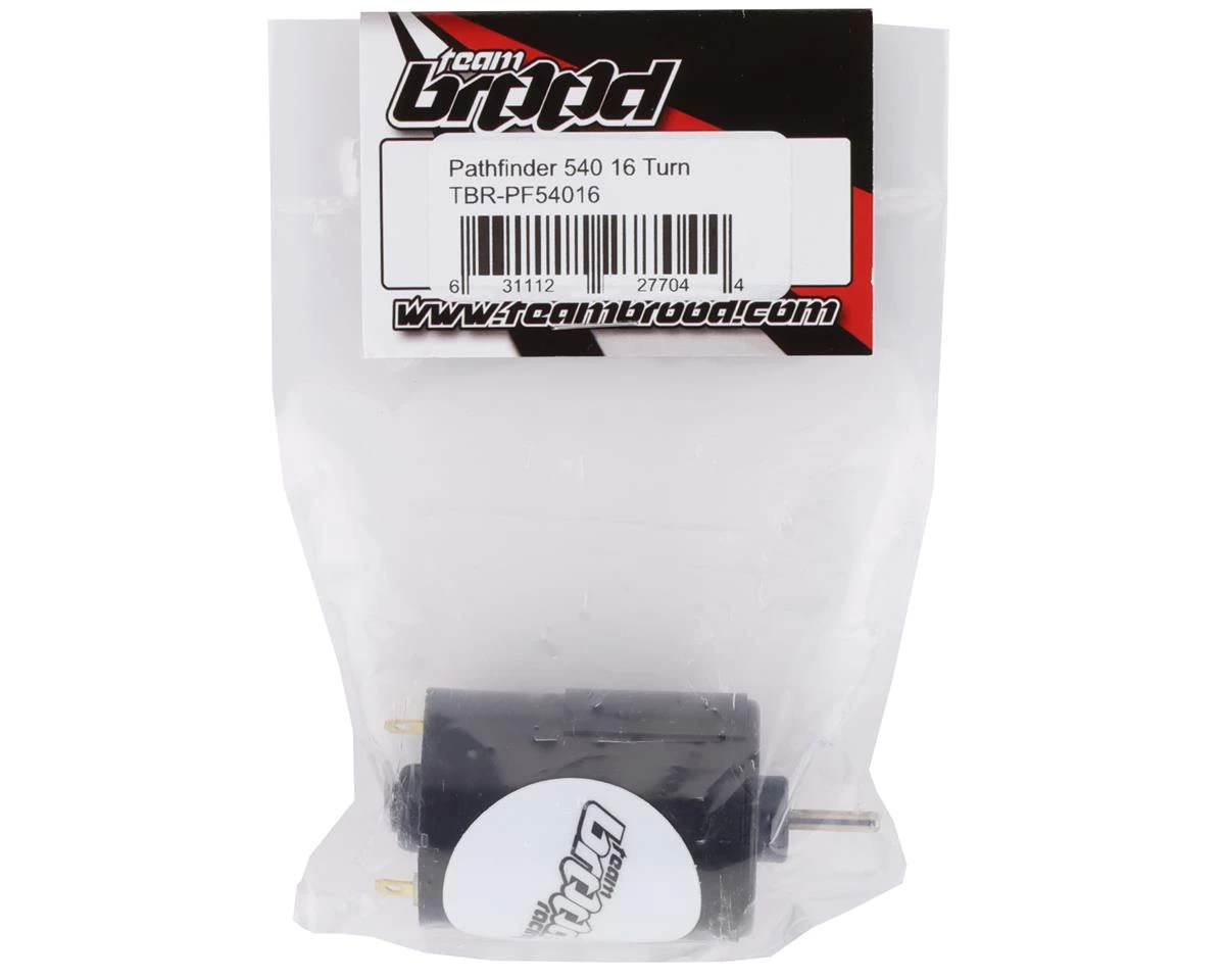 The Team Brood Pathfinder 540 16 Turn is built to provide excellent performance at a budget friendly price. The Pathfinder 540 features a 5-Slot armature for smooth startup and control in technical sections on the trail. The 540 size can allows easy installation in a wide variety of trucks, while still providing excellent torque, braking and horsepower. Optimal wire sizes to go with the most popular winds help create excellent power, wheel speed and torque. The Pathfinders are built with the best parts available, so they will perform under extreme conditions and environments, with less risk of failure like a typical sealed can motor.Â