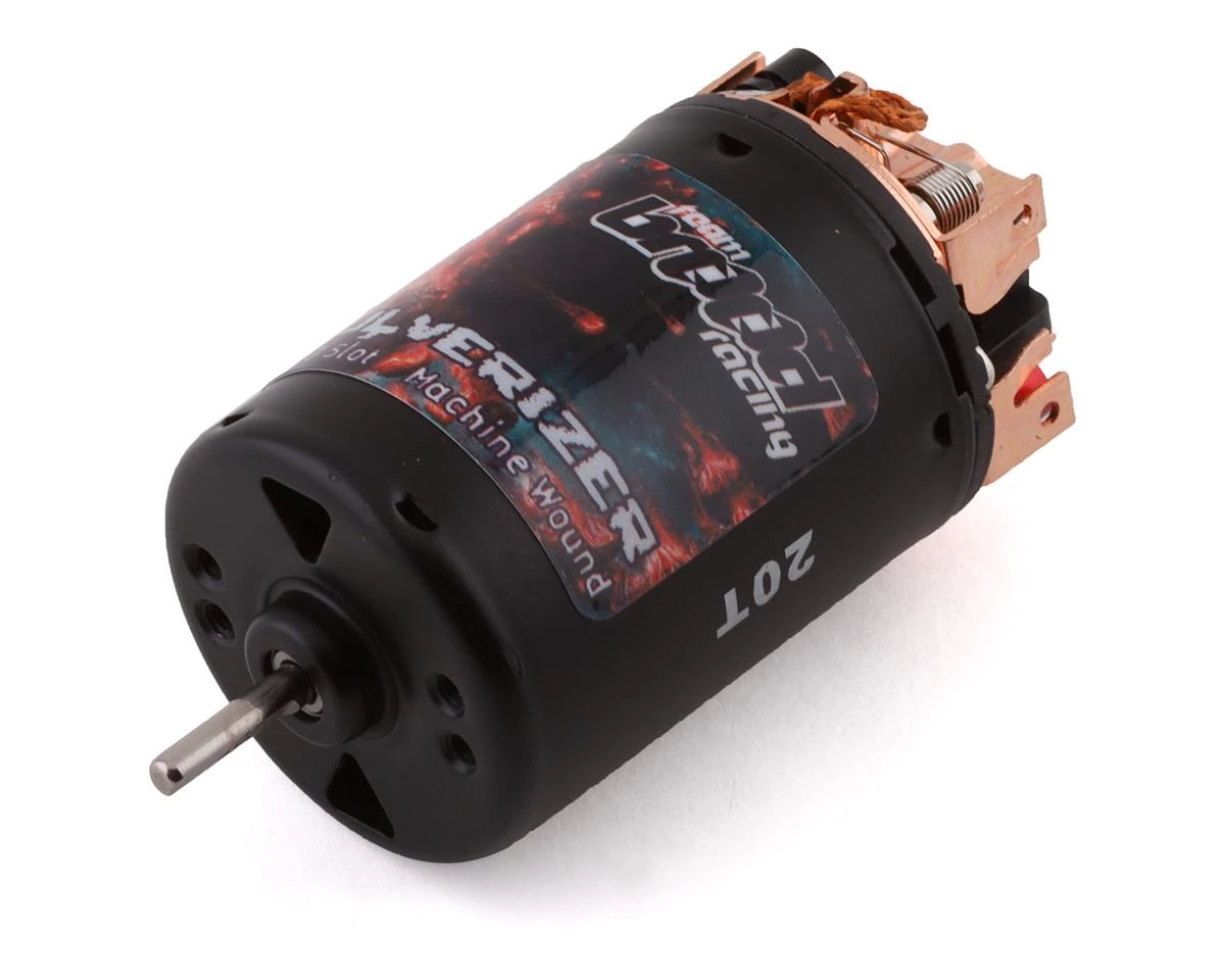 The Team Brood Pulverizer 550 3-Slot Machine Wound Brushed Motor is a great choice for budget conscious crawlers that want the benefits of a larger can 550 motor that has been disassembled, spec’d and prepped. Pulverizer series motors have been built using a strict assembly process that includes hand shimming the armature and precision brush hood alignment, and is then finished off with a low impact break in and dyno test to ensure that each motor meets strict criteria. This is done to extract all the power from this machined wound option, and provide enthusiasts with a higher quality choice when compared to standard machine wound motors.Â