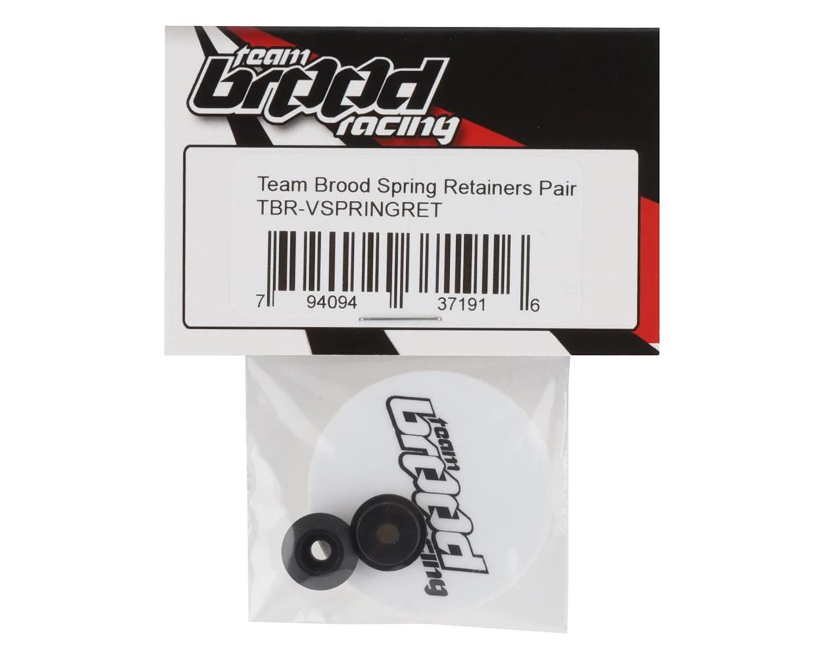 Team BROODÂ Velvet Shock Spring Retainers. These are intended to fit the Team BROOD Velvet shocks when using Dlux springs. These spring retainers have been CNC machined from Delrin for a precise fit and lasting durability. Package includes two Velvet shock spring retainers.Â