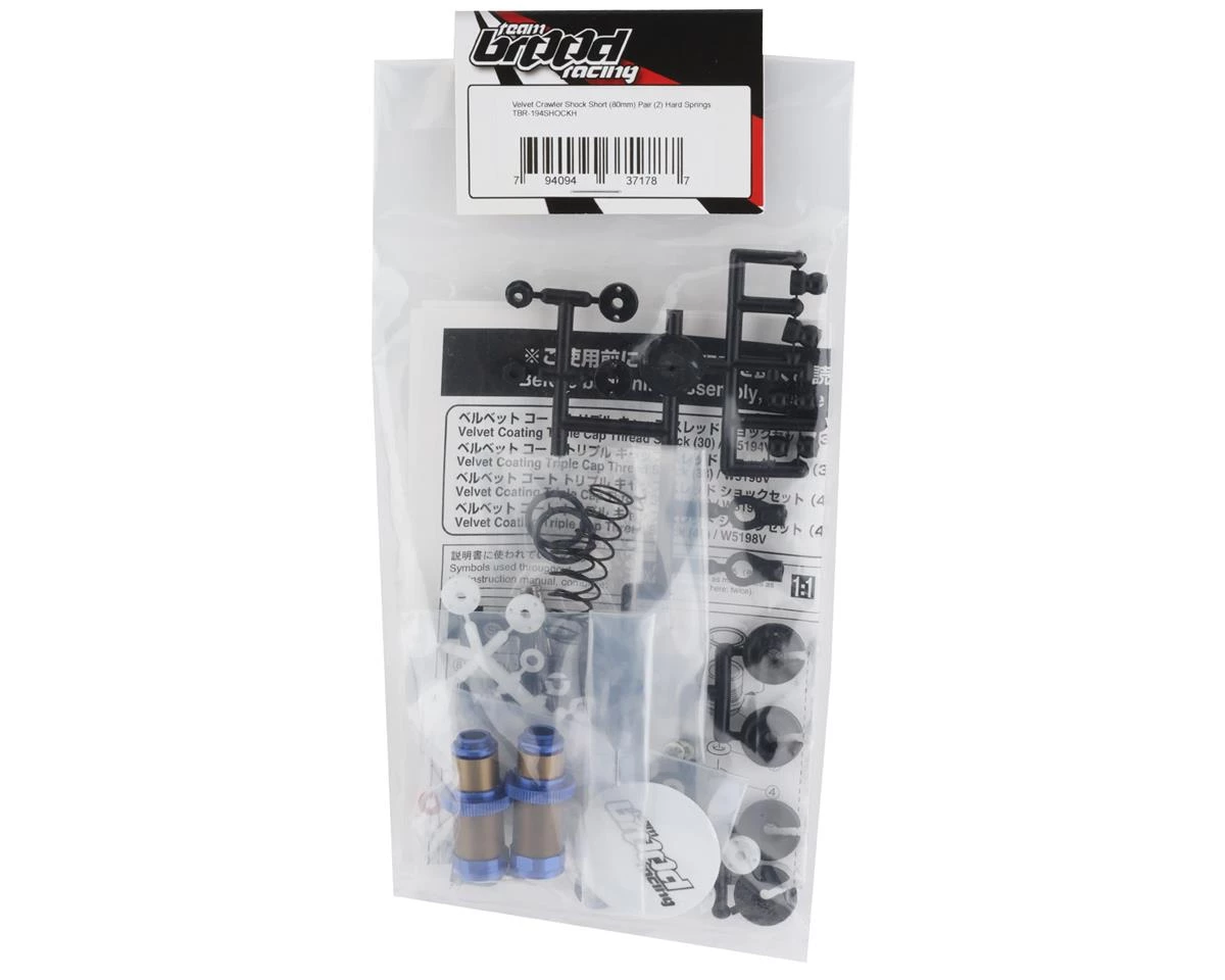 The Team BROODÂ Velvet “Short” Crawler Shocks with Dlux Springs offer the smooth and consistent performance that legends are made of! Using high quality components from Kyosho these Velvet Coated shocks feature ultra low friction, improving overall performance compared to standard shocks. Also included with the shock kit are Dlux premium springs known for consistent spring rates making shock tuning easy. Holding these springs on are the durable Team BROOD delrin spring retainers. Upgrade your rig with this silky smooth premium shock setup from Team BROOD.Â