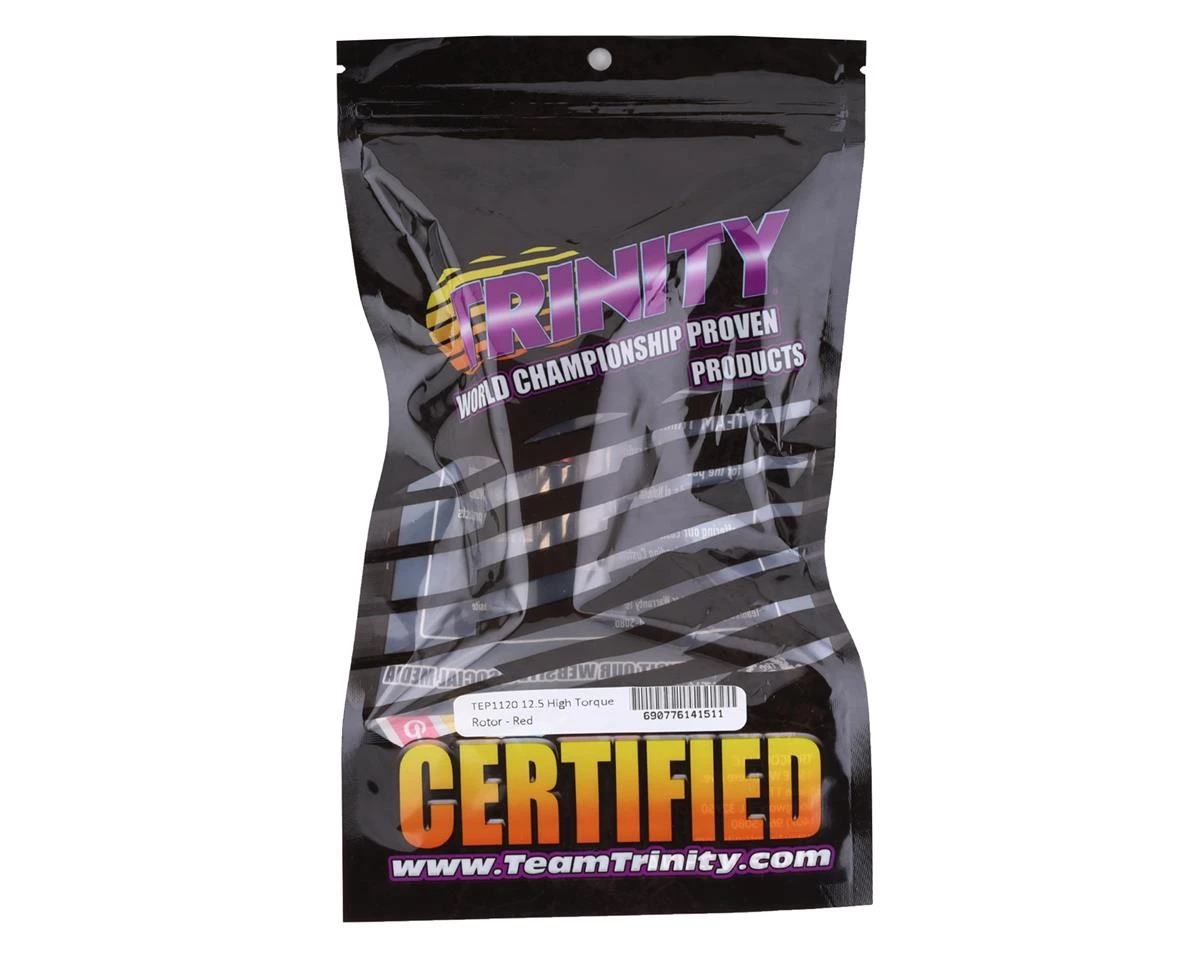 This is an optional Trinity 12.5mm ROAR Spec High Torque Rotor, and is intended for use with the Team Trinity Monster, X-Factor, Punisher, 24K D4, D3.5, Kill Shot and more. The Trinity motor line has a complete parts support and tuning system in place to make your motor the only brushless motor you will ever need. A variety of rotors are available to tune your motor and car for any track, size, traction, battery pack or weather condition you will come up against. With these in your pit bag you will never run into a track where you won’t have that “Monster Horsepower” advantage.