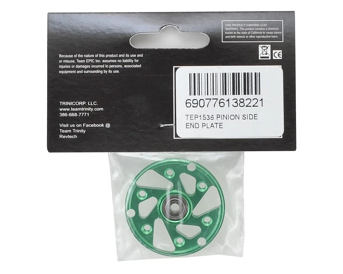 Trinity Monster Horsepower Pinion Side Plate. Package includes replacement motor endbell with factory installed ball bearing.Â