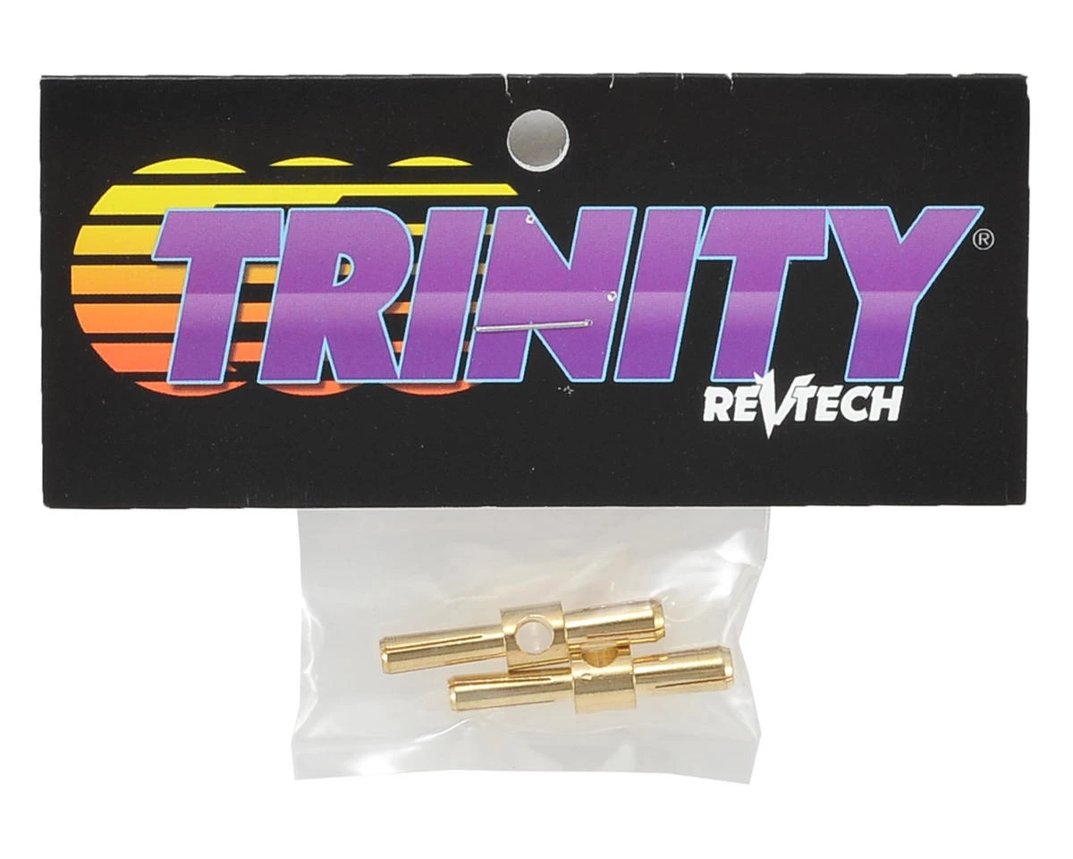 This is a pack of two Trinity REVTECH 4mm & 5mm Bullet Connectors. These gold plated bullet connectors feature a 4mm bullet on one side, with a 5mm bullet on the other that allows you to convert your existing charging leads to work with both 4mm and 5mm bullet equipped batteries.